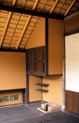 Wohl in keinem anderen Land wird die Kunst des Papierschöpfens und der Verwendung desselben soviel Aufmerksamkeit beigemessen wie in Japan. Glas hingegen spielt historisch gesehen nur eine geringe Rolle und wurde erst in der Meiji-Zeit mit Einzug der europäischen Baukultur populär |