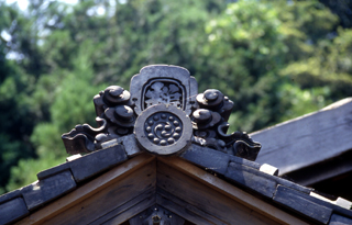 Dachziegeldetail: Familienwappen, Symbolik aus Religion, Mythik (und Aberglaube) finden Verwendung