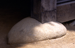 | Baustoffe und Techniken einer traditionellen Baukultur sind immer Ausdruck von Klima, Vegetation und Rohstoffangebot und sind somit auch ein Indiz für das Niveau einer Gesellschaft. Sowohl der Inselcharakter zum einen als auch der Einfluß chinesischer und koreanischer später auch europäischer Kulturen prägen das Erscheinungsbild des heutigen Bauhandwerks. Zu den traditionellen Baumaterialien zählen Holz, Bambus, Lehm, Stroh, Ried und Papier. Stein spielt in der Geschichte eine untergeordnete Rolle und wurde historisch betrachtet nur für die Ausbildung der Fundamente und den Speicherhäusern, den Kura, verwendet - abgesehen von den Steinwällen der Burganlagen. Die Verwendung von Dachziegeln kommt erst wesentlich später auf, sie sind heute gesehen aber ein wichtiges traditionelles Baumaterial. |