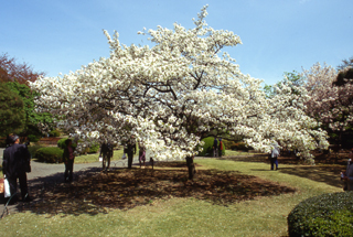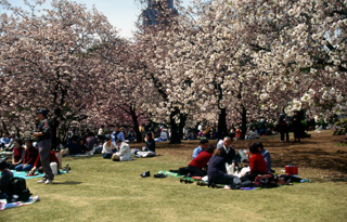 | Dieser fast 60ha große Park ist bei den Japanern wegen seiner Kirschblüte besonders beliebt. Die weitläufige Anlage beherbergt auch ein den botanischen Garten (einschließlich Glashäusern mit Wechselausstellungen und tropischen Pflanzen). Ursprünglich gehörte diese Anlage der Daimyo-Familie Naito, wechselte gegen Ende des 19. Jhdt's zur japanischen Kaiserfamilie, ehe sie nach dem 2. Weltkrieg dem Staat übergeben wurde. Im Park findet man an die 50 Arten und Sorten der Japanischen Zierkirschen, die mit dem im Park erhältlichen Kirschenführer lokalisiert werden können. Die beste Zeit für das Kirschblütenfest hanami in Tokyo ist um die 1. und 2. Aprilwoche (weicht etwas davon ab). | |||||||