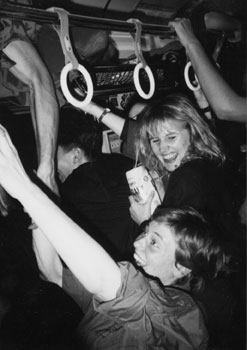 | Metamorphosen Der letzte Zug nach Mitaka. Wir, John, Ian und Jacky hatten einen langen Abend auf einem Presseempfang und in Bars hinter uns - Motown und Rolling Stone; ich fühlte mich verräuchert, polluted von schlechter Luft und Alkohol - und dennoch seltsam angerührt von der stummen Konversation mit Jacky: Wir hatten uns, ob der Lautstärke im Rolling Stone, über Briefchen unterhalten. Ich schlief gut und fest im Zug. Als ich aus meiner verloschenen Traumwelt erwachte, nahm ich gegenüber zwei Japanerinnen wahr. Eine unterhielt sich lebhaft mit - der anderen, die unglaublich verschlafene Augen hatte und ... einen bemerkenswert schiefen Mund. Ich drehte meinen Kopf nach links und sah das hübsche Profil eines Mädchens, das sich langsam in meine Richtung drehte. Die Linien ihrer Lippen zerliefen zu einem verwaschenen Band rosa Lippenstiftes. Die Makellosigkeit ihres Profils relativierte sich in einem Fleck, der ihr Gesicht war. In manchen Nächten haben scheinbar alle Gesichter schiefe Münder... Eine geile Fahrt Wie jeden Freitag abend fuhr ich mit John und Jimmy nach einer Portion Scrabble im Com'in in Ebisu mit der langsamen Bahn nach Hause. Gegen elf füllen sich die Bahnsteige wieder. Arbeiter, Workoholics, Betrunkene und Nüchterne - die Stadtnomaden lassen sich zu ihren Zelten in den Vororten transportieren. Abends ist die Stimmung im Zug wesentlich entspannter als morgens. Zwei Drittel der Fahrgäste schlafen einen erschöpften Schlaf und nehmen nicht mehr übel, wenn sich andere unterhalten. Wieder andere lesen oder lauschen den Gesprächen ihrer Nachbarn. John macht mich auf das Pärchen in der Ecke aufmerksam. Er will gesehen haben, daß - nein, unmöglich! Die beiden Kerls, wie sie so scheinschlafend aneinander lehnen... John bittet mich ihn fest zu drücken, um ihm ganz unauffällig über die Schulter blicken zu können. Ich sehe nichts, Jimmy hält uns für verrückt und unsere ungeschickte Spionageumarmung endet in lautem Gelächter. Der ältere, grauhaarige Japaner neben uns hat unser Schauspiel aufmerksam verfolgt und wirft uns diese undefinierbaren Blicke zu. Zielstrebig, durchdringend über die Schulter des Mannes hinweg, der, den Rücken uns zugewandt, zwischen uns steht. Wir sehen einander an wie durch Glasscheiben. Das Rumpeln des fahrenden Zuges schluckt die Geräusche um uns. Nur dieser bohrende Blick unseres grauhaarigen Nachbarns. Ich merke, daß ich John noch immer umarmt halte. Während unsere Augen das Gesicht des Grauhaarigen suchen, tauschen unsere Münder Spekulationen aus: "Glaubst du, daß er... ?!" Als er schließlich den Zug verließ,nachdem er sich von dem unbekannten Rücken verbschiedet hatte, meinte John gesehen zu haben, daß er den Reißverschluß seiner Hose hochzog... Masken Ich gebe zu, daß King Krimson im Kopfhörer eine etwas anspruchsvolle Unterhaltung im Zug ist: Die wechselnde Lautstärke der Underground-tunes aus den 60er Jahren fordert ständige Konzentration und stets einen Finger am Lautstärkenregler, um nicht von verspielten Flötentönen mit einem jähen, ohrenbetäubenden Schlagzeugeinsatz aus dem sanften Nichts in eine bedrohlich psychodelische Sphäre gerissen zu werden. Ich war eingenickt. Mein Finger war vom Kragen gerutscht, an dem ich die Fernbedienung meines Walkmans befestigt hatte, und mit einem lauten Kabuuuummmm!!!!! fuhr ich aus meinem säuselnden Halbschlaf auf. Ich mußte mächtig zusammengezuckt sein - unter meinem Schal fummelte ich eine Weile im Blinden, bevor ich den richtigen Knopf fand. Eben hatte der Zug angehalten, die Reifengeräusche waren verstummt und die Fahrgäste, die den Zug betraten, hatten mein Erlebnis wahrscheinlich in voller Lautstärke mitgehört. Dies war, vermute ich, eine der wirkungsvollsten Möglichkeiten, um auf mich aufmerksam zu machen. Der Zug war nicht sehr voll. Obwohl alle Sitzplätze besetzt waren, ließ es sich mit angemessener persönlicher Distanz ungehindert stehen. Der Neuankömmling im gepflegten braunen Anzug hatte mein dargebotenes Schauspiel mitverfolgt. Er war etwa Mitte 30, weder besonders häßlich noch hübsch, ein Bänker, mutmaßte ich, und jetzt sah er mich an. An seinem Blick konnte ich erkennen, daß er schüchtern war. Ich betrachtete mich im spiegelden Fenster des Abendzuges und stellte fest, daß ich in meinem neuen Kaschmir souverän aussah, wie ich so locker in den Haltebügeln hing. Ich versuchte lieber nicht zu lächeln, trainierte statt dessen einen entspannten, gelassenen Gesichtsausdruck. Inzwischen hatte sich sein Blick von meinem Gesicht gelöst und war zu meinen Waden hinabgewandert - ?!? - Ich fand es sehr außergewöhnlich und durchaus schmeichelhaft, daß sich jemand ausnahmsweise für den unattraktivsten Teil meines Körpers begeistern konnte. In diesem Augenblick blickte er wieder empor, mir direkt in die Augen. Ich glaubte, hinter der Maske etwas trauriges, Warmes erspähen zu können, neben einem Ausdruck, den ich beim besten Willen nicht zu deuten wußte. Er fuhr mit der Zunge über seine Zähne, seine Lippen. Ich widmete mich vorsichtshalber wieder meinem eigenen Spiegelbild. Er ließ nicht locker. Längst schon waren wir in eines dieser wortlosen Gespräche verfallen, die in der Bauchgegend ihren Ursprung haben müssen. Zaghaft. Dennoch spürbar. Wir blickten einander im Spiegel des Fensters an. Fragend. Kulturelle Interferenzen. Ich beschloß, King Krimson wieder lauter zu stellen. Uchi de. Ich wollte in meiner Sphäre bleiben. Nishi-Ogikubo. Der Mann im braunen Anzug verschwand von der Fensterscheibe in eine andere Welt. Touches... Morgendliche Stoßzeit. Der Wagen ist auf Körperkontakt vollgestopft. Der junge Kerl mit seiner Freundin dreht mir im Gedränge den Rücken zu und lehnt sich an mich an. Back to Back - Arsch an Arsch. Wohin ich auch versuchte zu entwischen, er folgt mir. Stets seine Freundin im Arm rieb der "Follower" seinen Hintern an meinem. Beide schienen Spaß daran zu haben. Als sie ausstiegen, lachte er mich an. ..
